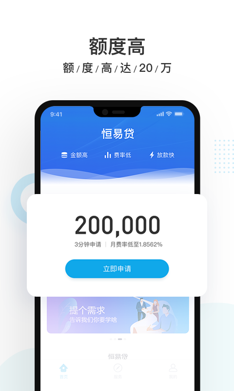 免费下载 大小: 下载:次 恒易贷 安卓版 借款 可达 20万 房屋抵押 有个人 创高 买车 网大 支 持: 分 类:软件下载 大 小: 开发者: 提 现:10 说 明: 下载量:次 发 布:2023-06-30 14:49:22 手机扫码免费下载 纠错留言 #恒易贷 安卓版截图 #恒易贷 安卓版简介 借款可达20万,低利率,审核快 网上申请办理,迅速审理,3个工作日内基础进行 贷款无抵押,借款可达20万 按月还贷,利率低 即速贷——有透支卡就能借,3分钟迅速审核,借款可达20万 社保贷——有个人社保就能借,借款可达20万 买车人融——有車就能融,不押车贷款 中易贷——房屋抵押贷款就能借,信用额度可达1000万 恒易贷是由北京网众同创高新科技有限责任公司发布的挪动借款商品智选APP,利用互联网大数据、移动互联等前沿科技,将大量丰富多彩的各种网络金融运营模式得到简易、形象化的展现给客户。 热搜词美团借款西游网大战神成人网大全gta5买车gta5在哪买车gta5怎么买车年收入20万互联网大赛top20万联网大型游戏传奇新服网大站顺网大天使之剑20万韩元