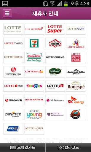 롯데멤버스앱(LOTTEMembersApp.)이란?롯데멤버스회원이라면모든롯데의포인트를하나로모아현금처럼사용하실수있습니다.롯데멤버스앱에서다양한정보및편리한서비스를이용해보세요.[롯데멤버스앱이용방법]1.로그인:롯데멤버스,롯데닷컴,롯데마트등홈페이지에서사용하시는“롯데FamilyID및PW”로편리하게로그인하실수있습니다.2.보안강화:고객님의소중한정보보호를위해보안프로그램을강화하여다소느릴수있으나안전하게보호하고있습니다.3.모바일카드:최초로그인시사용이편리한모바일롯데멤버스카드를발급해드립니다.4.이벤트:롯데멤버스BigPleasure스테이지,시네마등다양한이벤트를쉽고빠르게응모하실수있습니다.5.쿠폰:롯데멤버스에서받으신쿠폰을편리하게조회하고사용할수있습니다.6.컨텐츠:역대BigPleasure스테이지영상을통해대한민국최고뮤지션들의공연을라이브로감상하실수있습니다.7.매거진:매월발행되는롯데멤버스BigPleasure매거진을모바일에서도편리하게구독하실수있습니다.8.멤버스카드:카드신청/사용등록등을편리하게모바일에서도이용하실수있습니다.9.포인트기부:시각장애아동을위한도서기부캠페인인포인트Publisher캠페인을통해포인트기부에동참하실수있습니다.10.롯데포인트비밀번호등록:롯데닷컴,롯데홈쇼핑등롯데인터넷/모바일쇼핑몰에서포인트사용을위한비밀번호를쉽게등록할수있습니다.[주요기능]나의롯데멤버스1.나의카드:나의롯데멤버스카드보유현황을확인할수있습니다.2.나의롯데포인트:사용가능/잔여/소멸예정롯데포인트를제휴사별로확인할수있습니다.3.나의쿠폰:휴대폰MMS,쿠폰북(종이)로받으신쿠폰을롯데멤버스앱에서편리하게조회하고사용할수있습니다.4.나의이벤트:모바일에서참여한이벤트를확인할수있습니다.5.메세지BOX:고객님께서수신하신메세지를확인할수있습니다.BigPleasure1.BigPleasure이벤트:BigPleasure스테이지/시네마등다양한이벤트를쉽고빠르게응모할수있습니다.2.BigPleasure영상보기:역대BigPleasure스테이지/시네마관련영상을감상하실수있습니다.3.BigPleasure기사보기:BigPleasure스테이지/시네마관련기사를볼수있습니다.4.BigPleasure매거진:매월발행되는롯데멤버스BigPleasure매거진을모바일에서도편리하게구독할수있습니다.카드1.카드신청:롯데멤버스카드를발급신청할수있습니다.2.롯데멤버스카드사용등록:카드앞면에CVC3자리가표기된무기명롯데멤버스카드나롯데카드에서구매하신무기명식선불카드를본인인증후등록하여사용할수있습니다.롯데포인트1.기부:시각장애아동을위한도서기부캠페인인포인트Publisher캠페인을통해포인트기부에동참하실수있으며,다양한사회공헌단체에도기부할수있습니다.2.사후적립:롯데백화점,롯데마트,롯데슈퍼영수증으로미적립된롯데포인트를적립할수있습니다.3.동전적립:롯데슈퍼현금결제후남는잔돈을롯데포인트로적립할수있도록신청할수있습니다.4.롯데포인트비밀번호:롯데멤버스제휴사온라인몰에서롯데포인트사용시회원님의롯데포인트안전/보안을위한롯데포인트비밀번호를등록할수있습니다.※롯데멤버스어플리케이션은아이스크림샌드위치이상의안드로이드OS에최적화되어있습니다.