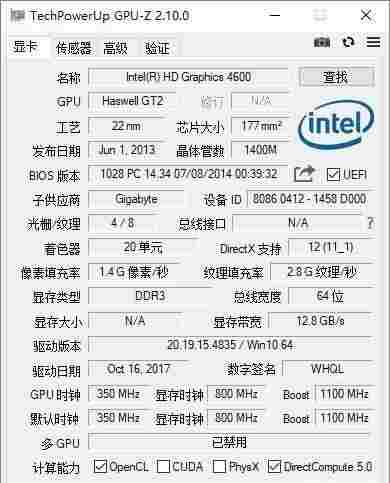 3.检验GPU关键、着色器和显卡内存运作頻率,显存类型、尺寸及网络带宽。