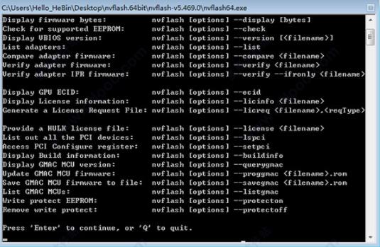 3、比照电脑显卡BIOS版本号:nvflash --compare filename;