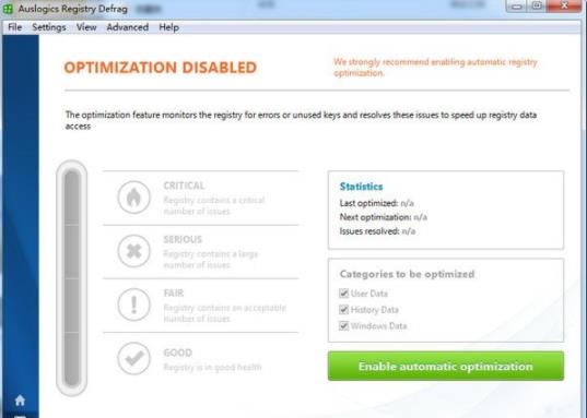 auslogics registry defrag汉化版是一款非常棒的注册表文件残片剖析及清理软件。根据扫描仪注册表文件信息内容来明确残片占比,并得出提升后速率提高的百分数。该专用工具可以协助客户清除在安裝第三方软件时残余下的注册表文件数据信息,在清除进行后还能对它进行修补和提升,使你的电脑上可以大幅度提高运作速率,并降低数据信息残余造成的安全隐患,有须要的客户赶紧免费下载。