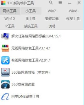 170系统维护工具吾爱破解版是一款涵盖了170好几个优化系统修车工具的辅助工具,软件集网络软件、小工具、win7专用工具、win8工具、win10专用工具、IE工具、安裝卸载掉、恢复工具、IP专用工具、系统软件等多种专用工具为一身,可以幫助你轻轻松松处理各种各样系统软件问题。手机软件有着170款多种类型的服务器维护小工具,以Rolan做为驱动器,将小工具集成化在这里一款手机软件中,双击鼠标就可以开机启动项专用工具,不用所有的组装流程,应用比较简单。有须要的朋友们欢迎大家前去在线下载。