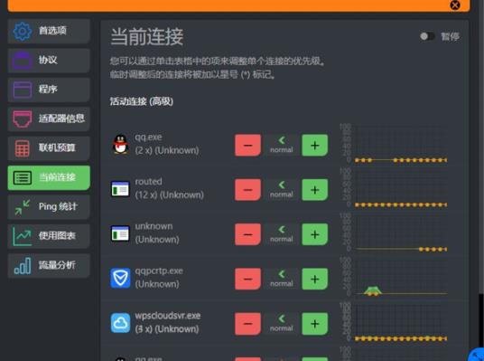 ③ 专业特定某系统的优先。从 选择项----设定----程序流程----别的的,加上必须的程序流程,并特定优先。等级高的则首先应用网络带宽。