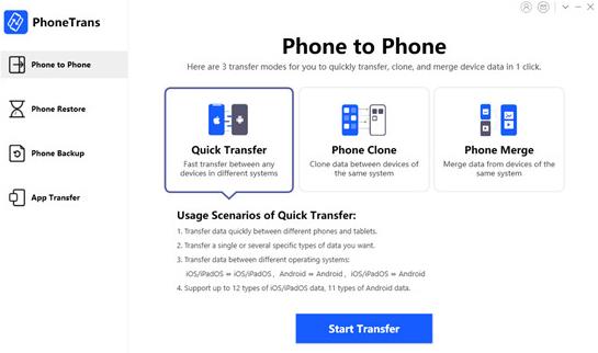 根据一键式彻底转移和可选择性转移所需內容的选择项,PhoneTrans可以让您良好控制要挪动的具体内容和方法。
