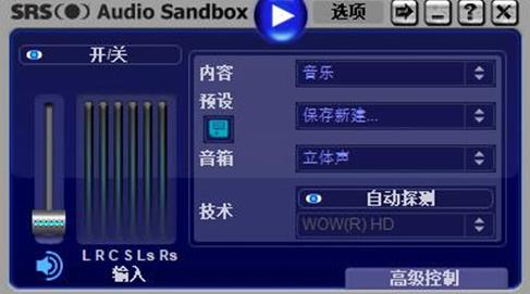 3、SRS Circle Surround II —— 混和环绕声或单声道音频輸出为具备环绕声实际效果的 5.1 或 6.1 声道。