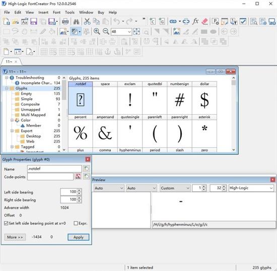 高质量矢量图格式能够很方便地导进。你甚至还可以在FontCreator和你喜欢的矢量素材制作软件中间复制和粘贴。