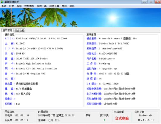 3、基本资料:硬件配置与系统软件的相关信息,底栏也会有一些应用系统信息内容
