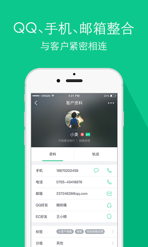 免费下载 大小: 下载:次 EC 安卓版 支 持: 分 类:软件下载 大 小: 开发者: 提 现:10 说 明: 下载量:次 发 布:2023-07-12 09:42:52 手机扫码免费下载 纠错留言 #EC 安卓版截图 #EC 安卓版简介 EC是一款领跑的SCRM(社交化客户关联管理方法)系统软件,根据融合QQ、手机微信、手机上、固话、短消息、电子邮件、网址、拜会等社交沟通交流专用工具,为企业根据社交互联网创建即时联接,着眼于为企业打造出以客户为中心的关联管理方法及综合服务平台,让企业、职工、客户紧密相连。每日,有数千万业务员应用EC运营自身的客户,并在服务平台上造成数亿级的市场销售个人行为。现阶段EC的付钱企业数、活跃性用户量、收益经营规模和年增长率处在领域的领先水平,在技术上也更加健全,已经变成SCRM的领先者。