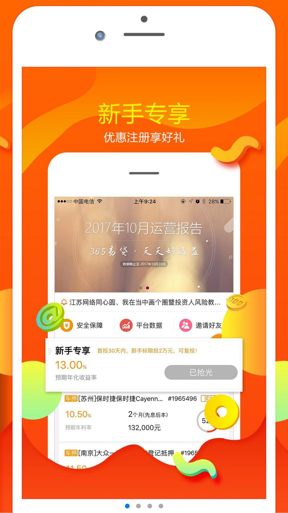 365易贷安卓机手机客户端,是江苏省三六五易贷商业信息股权有限责任公司对于应用Android网络平台的PC用户发布的手机服务,致力于利用手机上具备的便捷性,为用户出示自助式招投标,在线充值、取现、账号查询等服务项目。让您得到 长期投资的另外,享有项目投资快乐。 365易贷app客户端关键作用: 1.项目投资借款、回收债务; 2.支持银行卡充值、取现; 3.支持设定全自动招投标; 4.支持账户信息改动; 5.支持债务转让; 6.支持帐户资产基本信息实时查询; 7.支持信息即时消息推送; 8.支持用户反馈意见。