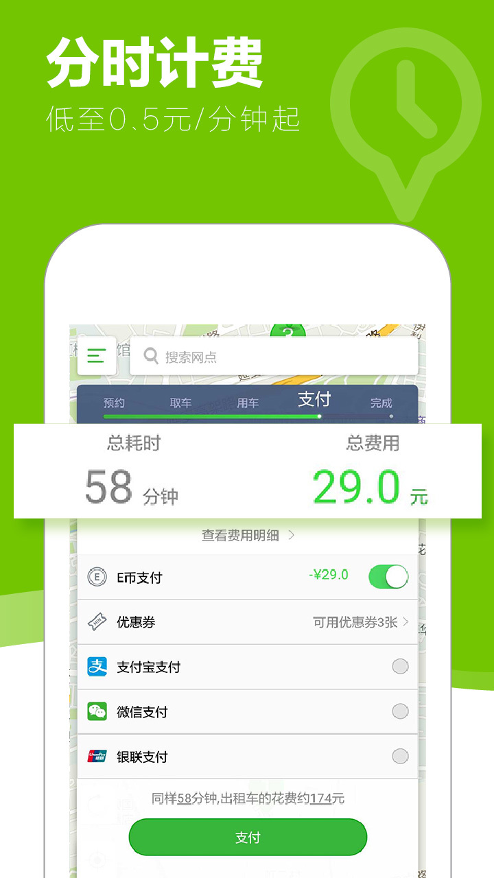 EVCARD新能源汽车租用,是上汽汽车寰球车享集团旗下知名品牌,一种不同于传统式方式的汽车租赁服务,是依靠移动互联完成的一种新式租用方式,与传统式租车自驾对比: • 分时租赁,按分鐘收费,每分低至0.5元起 • 全过程手机上App自助式订车拿车、用车,退车,省时省力 • 短时间近途出行租车自驾武器,尤其是到飞机场、产业园区、校园内、CBD • 网点遍布多,24小时网点就在你旁边,随意网点自助式取还 • 当地车牌,无尽号限号苦恼 • 减少用车成本费,不用维护保养 • 新能源汽车,绿色环保,翠绿色出行 “分时图、铁友、共享”,EVCARD新能源汽车分时租赁,随意出行新感受。