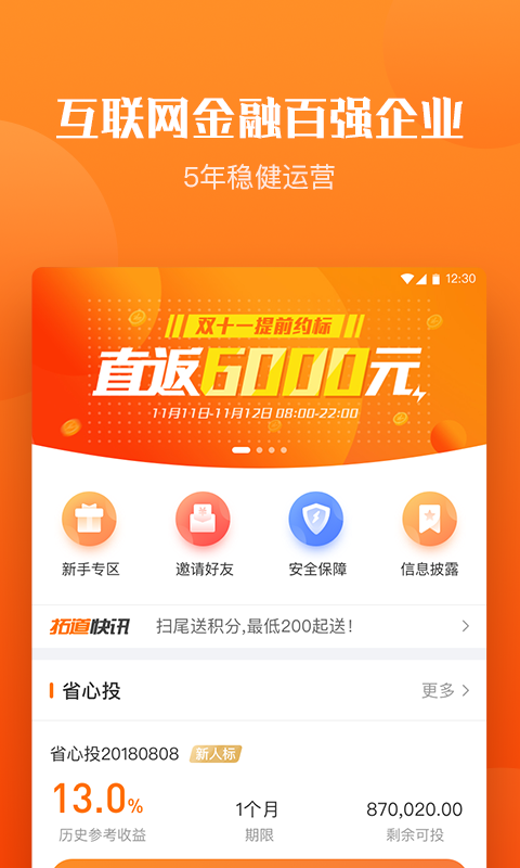 拓道金服是杭州拓道互联网金融服务有限公司倾力打造的国内专业汽车金融理财平台; 【新手大