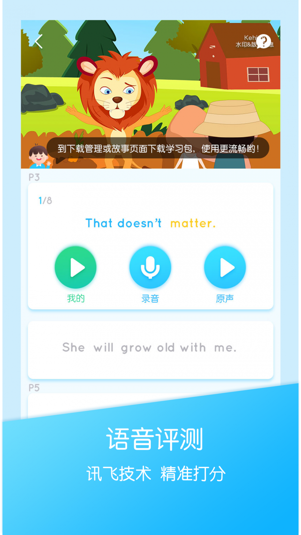 可瀚学堂学生端,优选了30个伊索寓言小故事,将其制做变成一套生动活泼、智能化互动交流的中小学英语课堂教学商品——《可瀚学堂之伊索寓言》。 可瀚学堂选用讯飞语音测评技术性,让小孩赢在起点上;选用