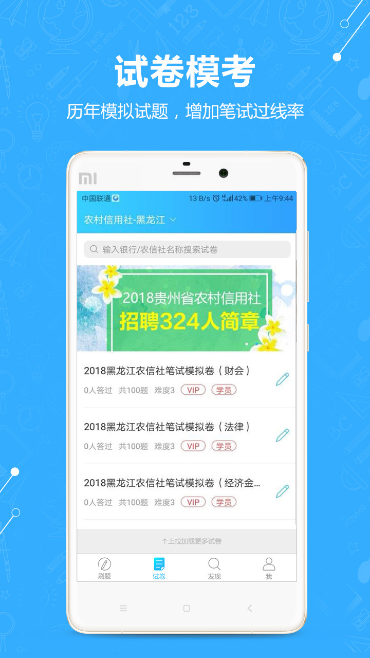 介绍: ~~金融机构、农村信用社、银行从业、证券考试、基金从业资格、路局、别的国营企业、电网和烟草招聘考試做题良器~~ ~~出示金融机构、农村信用社、银行从业、证券考试、基金从业资格、路局、别的国营企业、电网和烟草招聘考試练习题和模试卷~~ 【大家的关键优势】 出示每个金融机构校招信息、考试