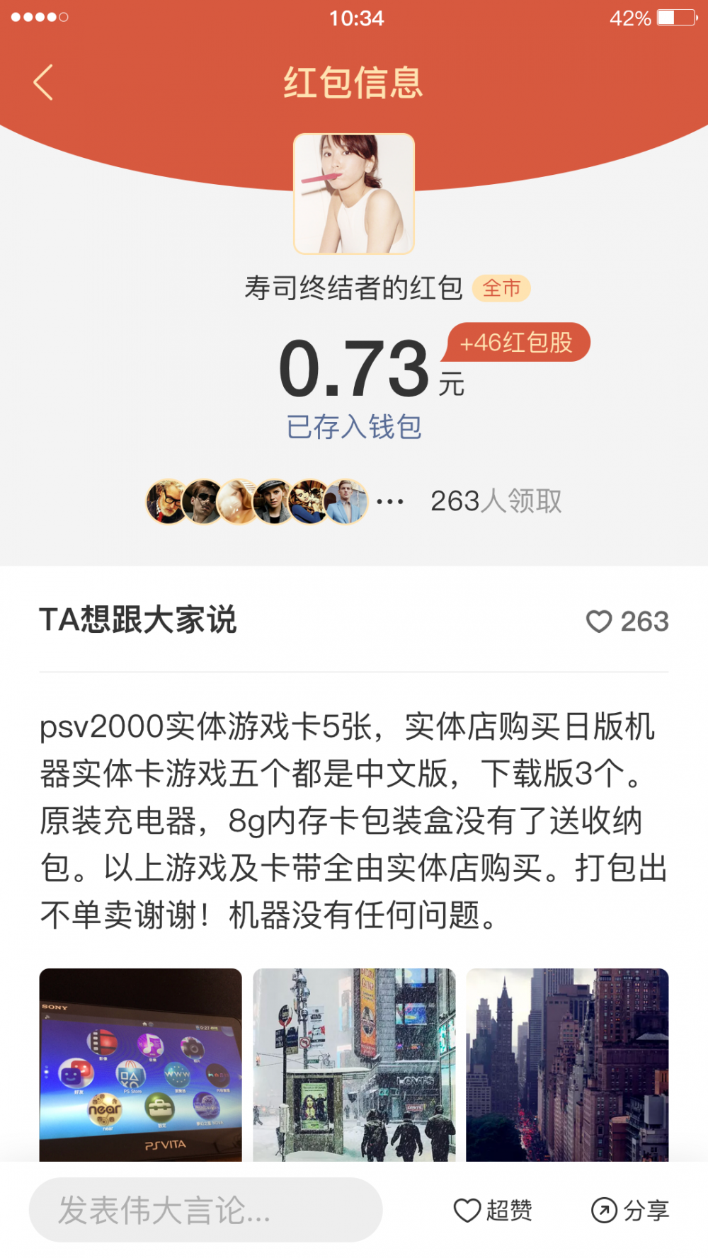 免费下载 大小: 下载:次 千米红包 安卓版 支 持: 分 类:软件下载 大 小: 开发者: 提 现:10 说 明: 下载量:次 发 布:2023-07-15 09:58:46 手机扫码免费下载 纠错留言 #千米红包 安卓版截图 #千米红包 安卓版简介 千米红包App是一款根据LBS技术性的共享红包App。用户可在周边一公里红包城池内,查询红包信息并领到现金红包,领到的红包额度将适用取现至微信零钱!另外用户可根据千米红包,发广告或是祝愿的信息,每条信息将根据现金红包的方式派发到用户自定的自然地理范畴内,红包将被智能化消息推送至用户。