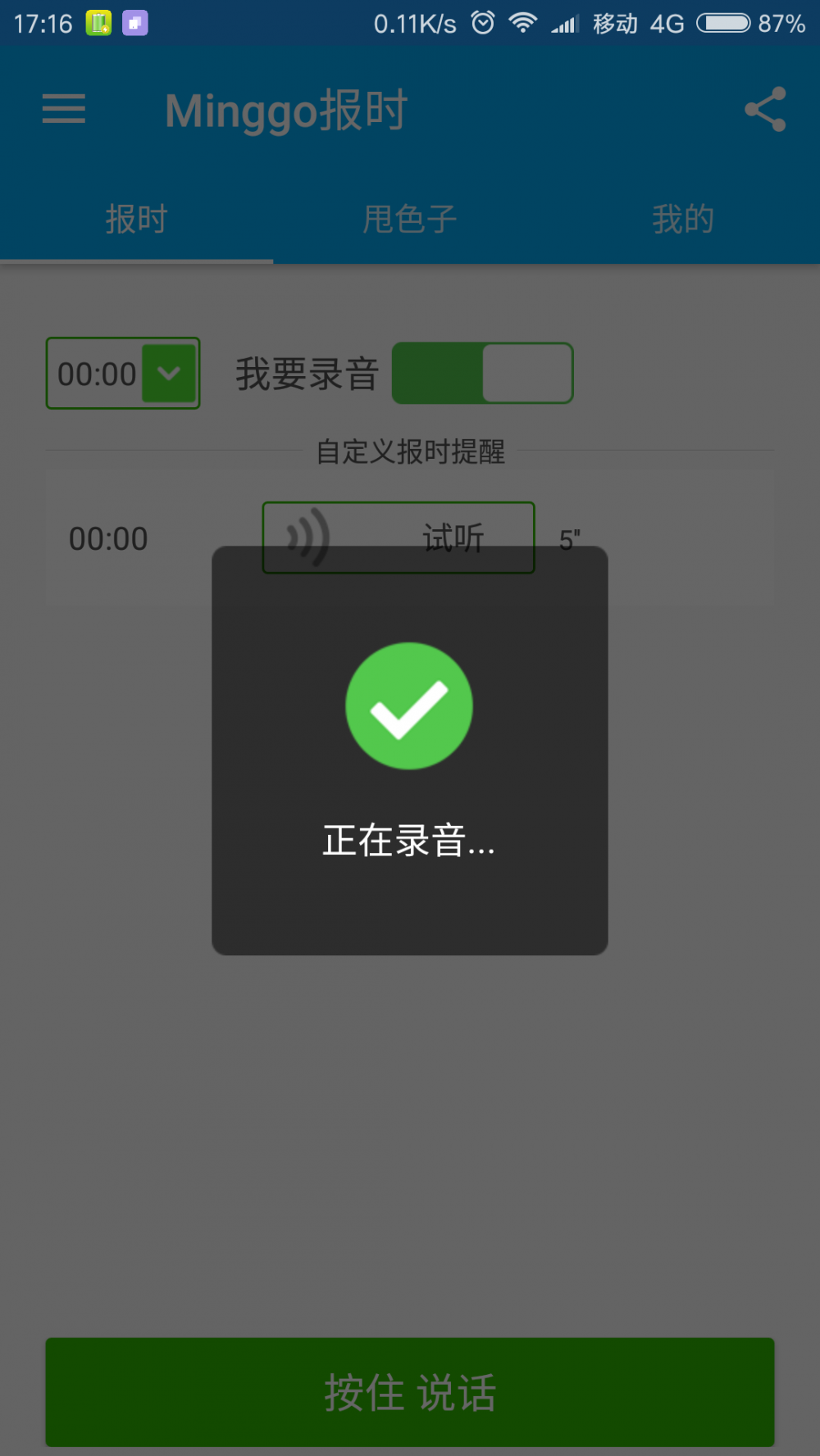 免费下载 大小: 下载:次 电量整点报时 安卓版 支 持: 分 类:软件下载 大 小: 开发者: 提 现:10 说 明: 下载量:次 发 布:2023-07-15 14:07:01 手机扫码免费下载 纠错留言 #电量整点报时 安卓版截图 #电量整点报时 安卓版简介 本名《电量显示和整点报时》改名为《电量整点报时》啦~ 1、孙燕姿整点报时,可自定义录音。 2、每日情绪标语通知栏显示信息,可自定义情绪语。 3、生日提醒、喝水提醒、自定义报时。 4、甩色子[等级、家务活]趣味小游戏。 5、用电量小于30格响声提醒。 6、"私人订制"、共享和反馈意见作用。 7、不另加别的服务项目,轻巧。 恋人报时,大牌明星报时和时间管理全是值得拥有的应用作用。想优先选择感受商品,加入团队商品群QQ:53110254。