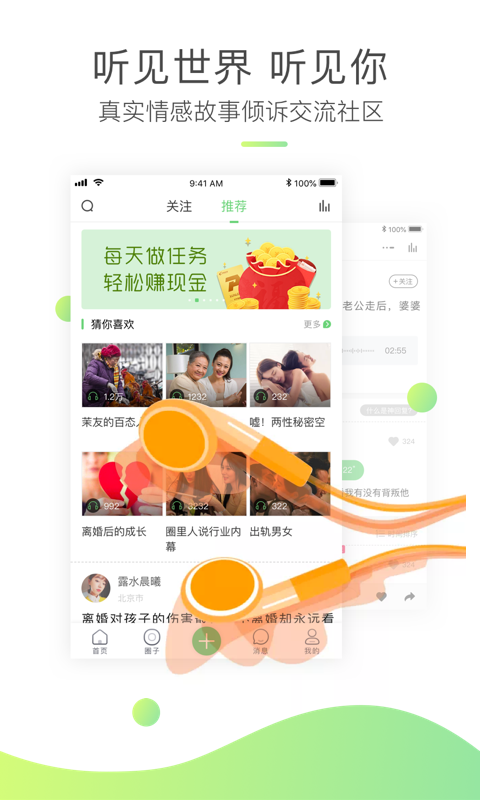 茉莉——自主创新短声频情感社区。 一款比较简单的手机软件,给你用最轻轻松松方便快捷的方法,倾诉心里的密秘,遇上生疏的知音人,听见震撼内心的真实事件。 【真正感情故事】 嗨,路人,我不认识你,但大家却在历经着相互的风吹雨打。 原先,这一全世界,有那麼多个孤独的心,期盼着倾诉,期盼着被了解。 在茉莉,听见全球,听见你,忍不住道一声开心:原先你也在这儿! 【五大商品特点】 1、音频故事,受欢迎话题讨论 在茉莉来源于五湖四海的网民,听最真正的视频语音,最有温度的感情故事。 2、社交圈交朋友,同爱好结盟 一个能够快速聚堆,与同爱好结盟,供你放置感情的小区! 3、密名倾诉,释放压力 给你的倾诉无所顾忌,畅快打开心扉,释放压力,心态调整,轻轻松松向前! 4、兼职赚钱,微信发红包 邀请人、任务中心、褔利