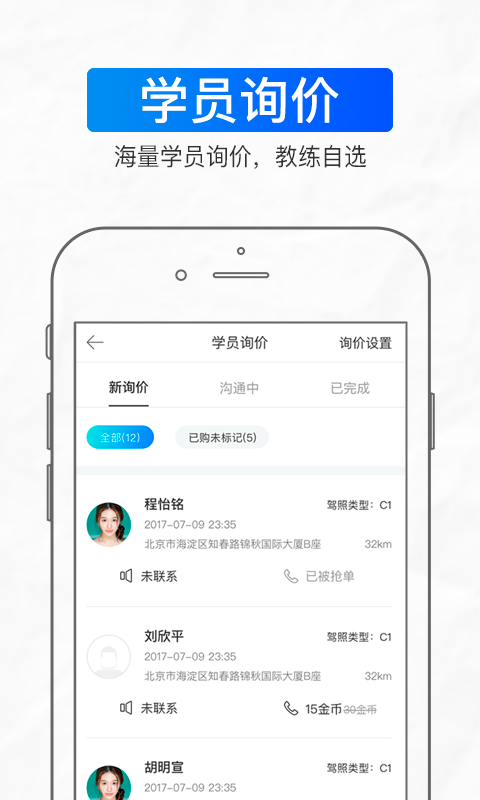 模拟、科三语音播报作用,伸伸手指就可以全自动进行考試命令,教练宝典让教练们用最轻轻松松的方法进行工作中! 【驾校招生】 教练进驻教练宝典,能够随时随地接到从驾考宝典来资询学驾照的学员信息内容,驾考宝典有着干万学员,真实保证帮驾校学车处理招收的难题。 【预定学车】 教练公布学车日程,学员一键预定,学车日程一目了然。放心智能化管理方法,即时通告学员考試分配,立即把握考試結果。 【学员管理方法】 教练能够根据教练宝典,导进学员手机通讯录,进而创建学员智能管理系统,随时随地查询学员的科目一到科目四学习培训考試情况,提升 考試达标率和课堂教学高
