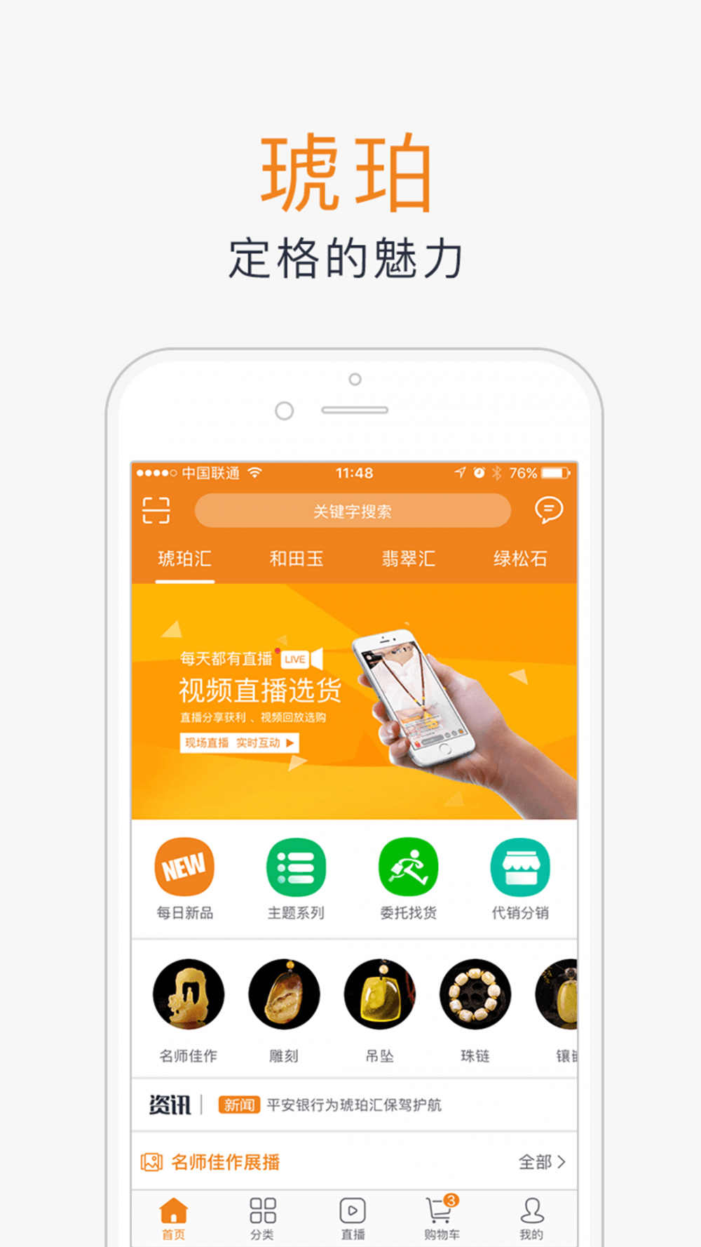 效率 2.B2C分销商 减少领域运营门坎,散播琥珀文化艺术,消化吸收大量客户参加,相互做大琥珀翡翠玉绿松石和田玉销售市场。协助经销商发掘销售市场增加量,将大量的销售市场潜在性要求转换成真实的销售量。 ·连通线上与线下,扩展经销商营销渠道 ·发展趋势微商代理,扩张经销商营销团队 3.C2F商品订制 ·潜心设计方案与加工工艺,考虑顾客人性化要求 4.C2B重构恢复 ·高手加工工艺,重绽琥珀风彩
