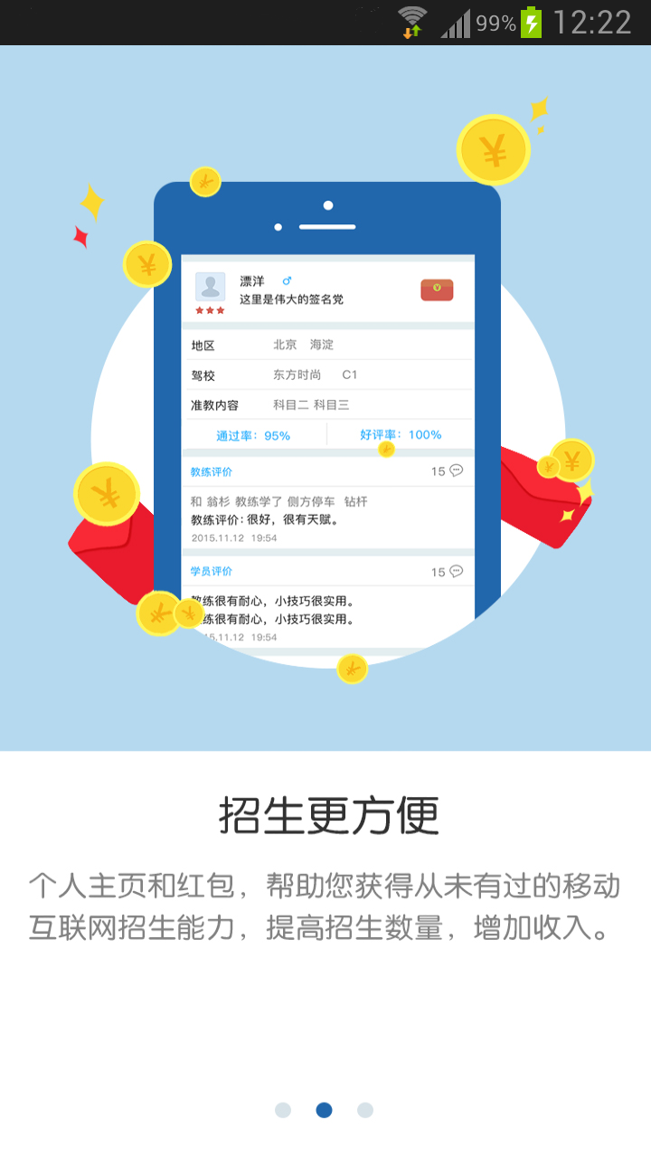免费下载 大小: 下载:次 欢乐教练 安卓版 支 持: 分 类:软件下载 大 小: 开发者: 提 现:10 说 明: 下载量:次 发 布:2023-07-16 11:16:40 手机扫码免费下载 纠错留言 #欢乐教练 安卓版截图 #欢乐教练 安卓版简介 1.教练学员管理。 2.课堂教学日程查询,点评学员,学员的学车状况。 3.教练的私人信息,早已休假调休管理方法。 4.学员约车的消息推送通告 5.大红包共享及其领到