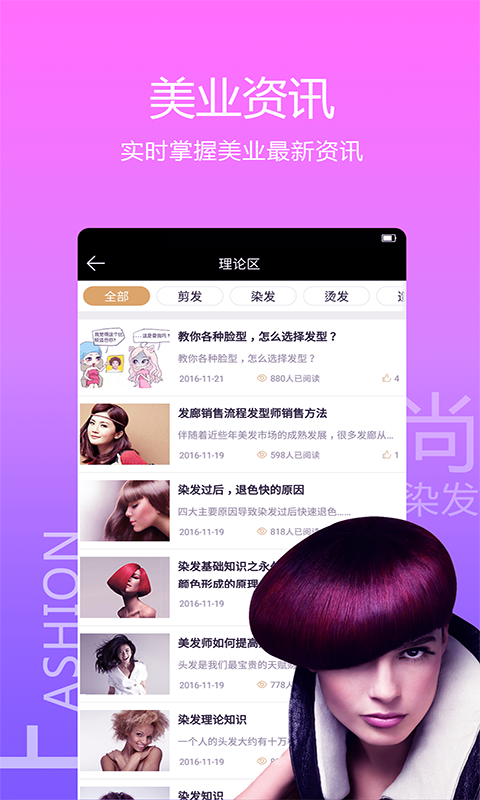 效率。 【关键作用】 一、美发课堂教学视頻 大量技术专业美发、染头发、烫头发、造型设计课堂教学课程视频!随时收看学习培训,迅速提高美发、理发、染烫、造型设计专业技能!发型师、美发师为您详尽解读,逐渐分析各种各样美发、染烫、造型设计方法;带有美发新手入门、中、大师理发、染头发、烫头发、造型设计等丰富多彩课程内容。 二、染烫武器 智能化的染头发、烫头发具体指导计划方案专用工具!相互配合瑛派儿《香素妮》系列产品染膏,挑选染色总体目标色、背景色,系统软件全自动测算出所需染膏、双染奶净重。创新染头发管理体系,头型染色计划方案轻轻松松get√ 三、潮流趋势 即时关心美容护肤美发领域前端开发时尚资讯、美容连锁时尚潮流动态性,融合美发、烫头发、染发技巧,让您轻轻松松把握领域时尚