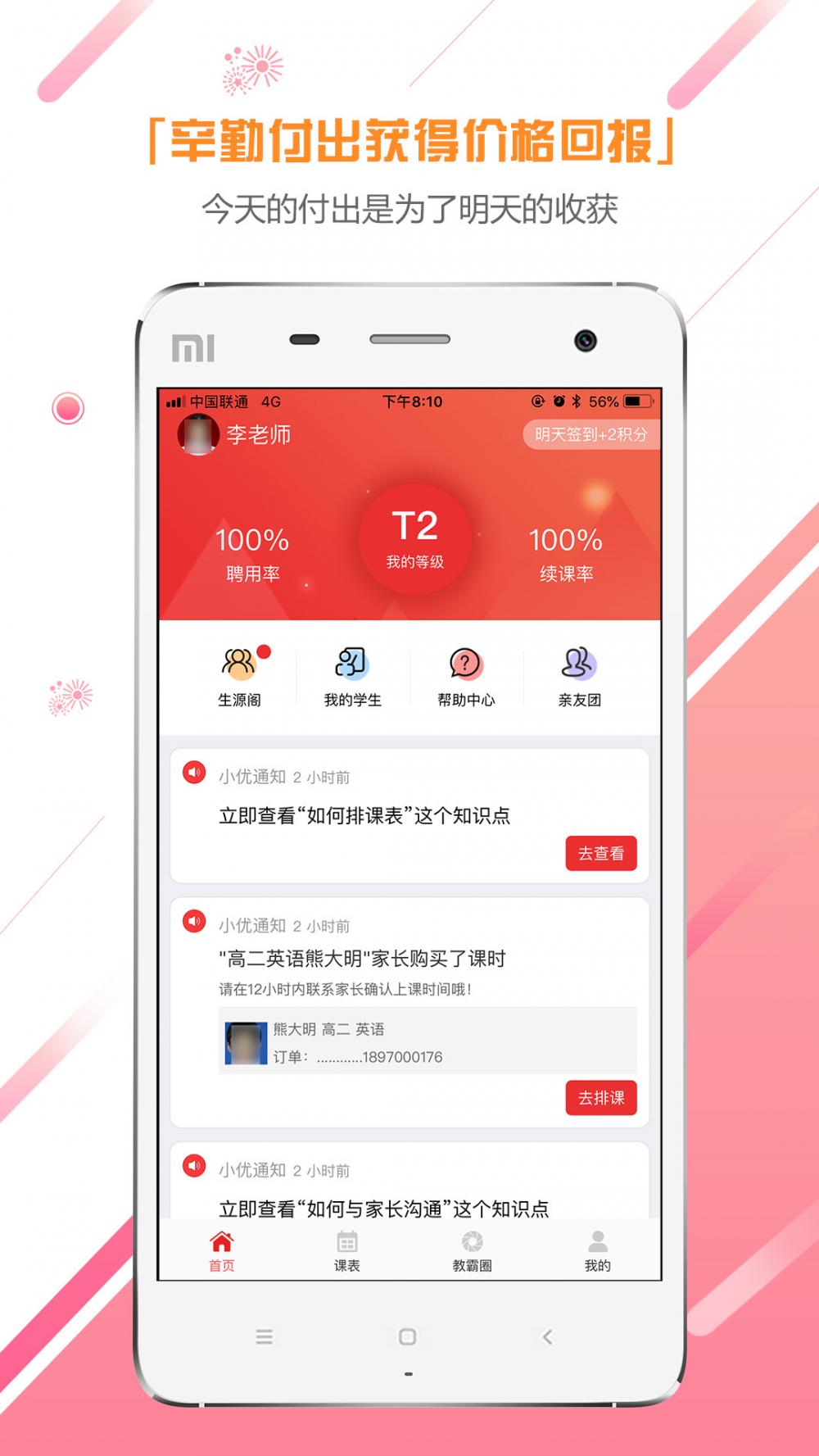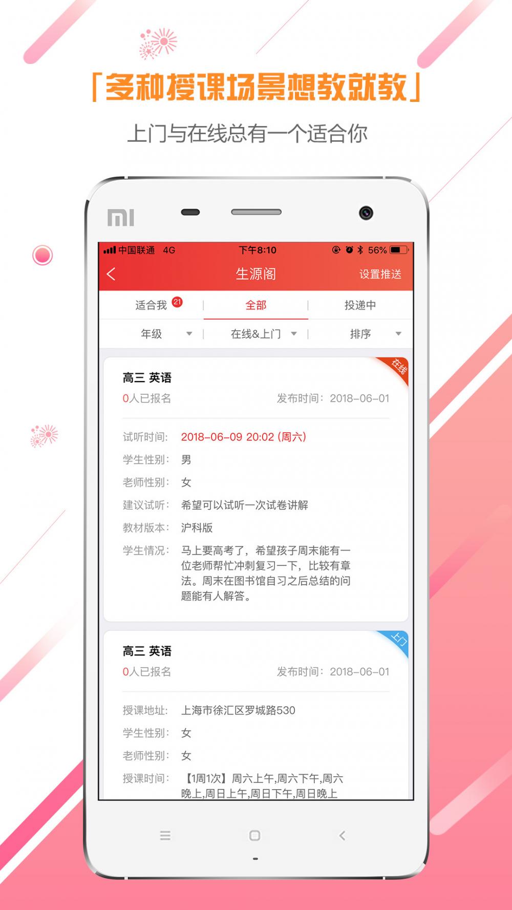 -优思老师为百所名校联名鞋验证的在校学生提供家教老师服务项目,为教师提供上门服务 在线授课 线下推广第三讲课室内空间多种多样教学方式; -现阶段已聚集5万985/211高校在校学生和随意优秀教师 为何要应用优思老师 -能够做上门服务家教老师--由名校大学生家教优思家教老师提供 -能够根据