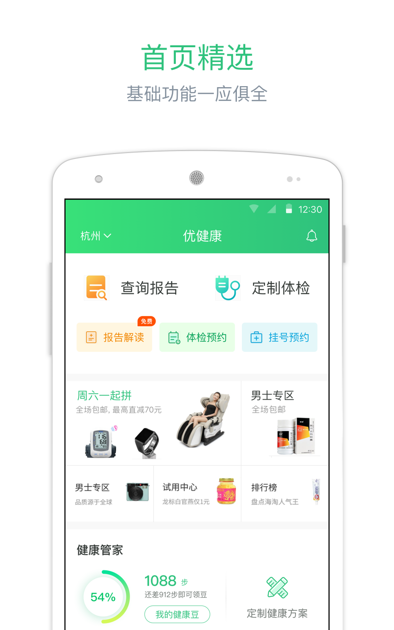 优健康,您的健康风险管理方法权威专家,根据我国体检知名品牌美年大健康和全国各地三甲医院的身心健康互联网大数据,为您打造出一款全方位把握本身健康状况,开展合理健康管理的武器! 【体检报告一键领取,数据信息终生储存】 体检完无需到体检管理中心拿汇报,或等汇报寄进家。手机上随时查询,省时省力; 往年体检报告数字化、云储存,各类历史记录全比照,您的身心健康行情一目了然; 【体检报告专家解读】 200位医师,构建您个人的权威专家服务团,体检报告线上讲解,从此担心各种各样专业术语不明白; 【定制人性化体检套餐内容】 技术专业的数据库系统,迎合您的身体情况,定制专享体检新项目,开展合理的健康管理; 【健康风险预测分析】 配置全国各地著名诊疗专家团,独创性病症风险性预测模型,依据您的各类体检数据信息指标值,为您精确预知未来健康风险,防范未然中医养生; 【健康全管理方法】 家中健康管理档案一个账户全管理方法,关心全家人身体状况;选购体检送身心健康,选购老年人专享体检套餐内容,孝顺父母; 【个人定制健康管理