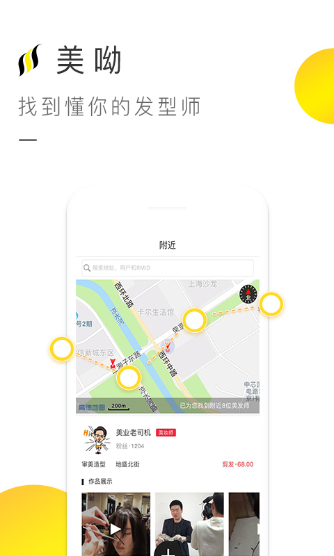 上学,搬新家,跳槽...新领域找不着懂自身的发型师? 美容美发前,开启美呦,搜索周边发型师,