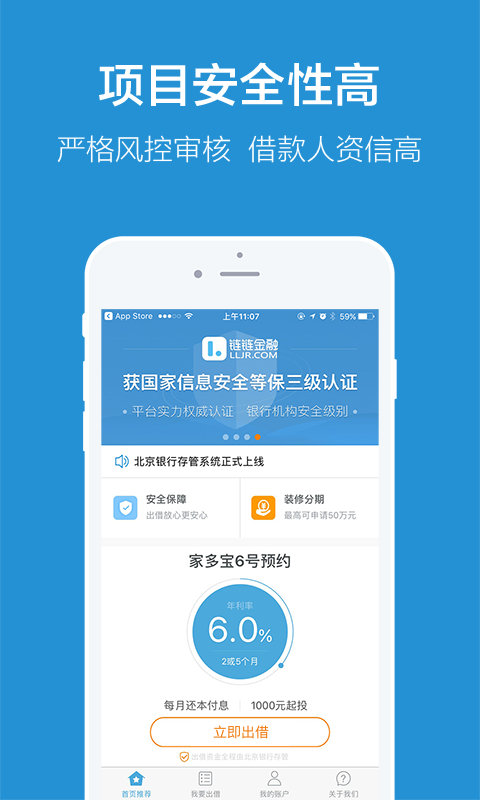 链链金融•连接彼此 【资金金融机构存管】 链链金融已连接北京银行存管系统软件,进一步确保客户利益; 【投资理财产品】 •5-365天项目投资限期,一千元起投; •期满后一次性付息,3个工作日之内到账; •项目投资零成本,在线充值、取现不用服务费; •新项目标底均相匹配真正贷款人; •资金存管防护,不碰触资金; 【手机上APP】 •抢标迅速更便捷; •适用密码解锁,实际操作方便快捷; •贷款利息资金回笼,立刻了解;交易明细,一目了然; 官方网站:WWW.LLJR.COM 热烈欢迎拨通在线客服:400-056-9900