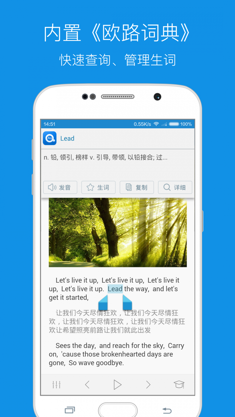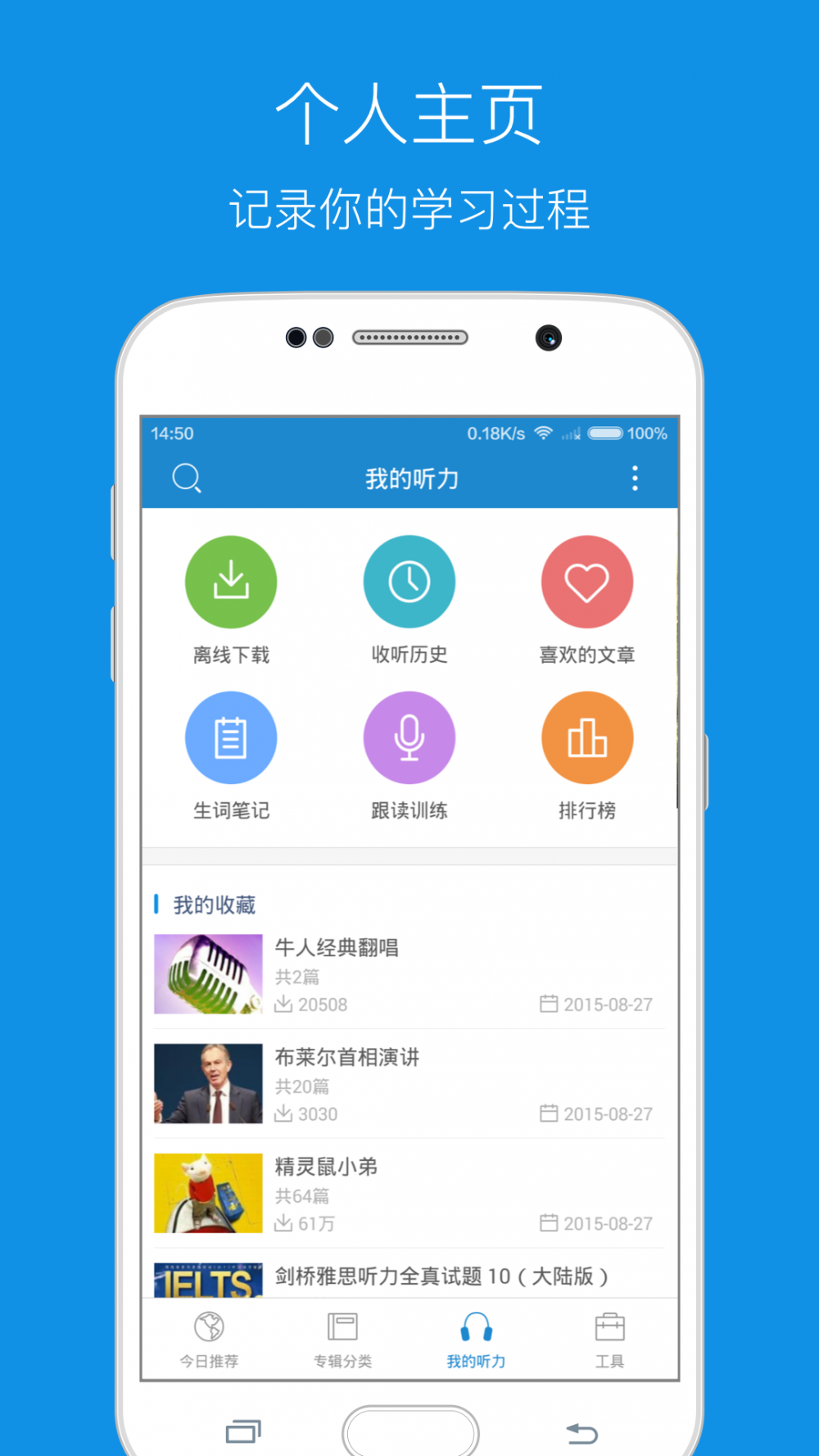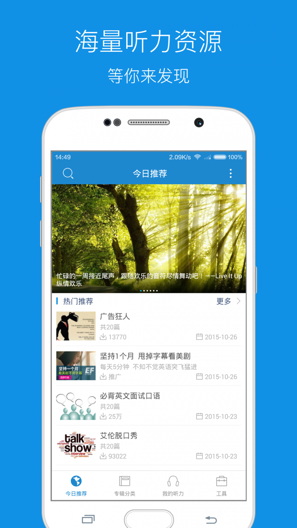 免费下载 大小: 下载:次 每日英语听力 安卓版 支 持: 分 类:软件下载 大 小: 开发者: 提 现:10 说 明: 下载量:次 发 布:2023-07-19 11:41:45 手机扫码免费下载 纠错留言 #每日英语听力 安卓版截图 #每日英语听力 安卓版简介 安卓手机系统上功能强大的线下听力软件有着每天更新的海量英语听力库,并出示智能语音系统高亮跟随功。 -VOA规范、VOA慢速度、BBC新闻每天更新 -收益海量新理念、GRE、TOEFL英语听力資源 -收益海量平时对话训炼、名人演讲資源 -适用视频语音高亮跟随功能 -独创性LightPeek划词搜索功能,对文章内容中的英语单词即指即译 -适用快速下载,线下应用,班里、地铁站里随时随地应用 -起床闹钟功能,每日醒来为您播放视频当日的听力