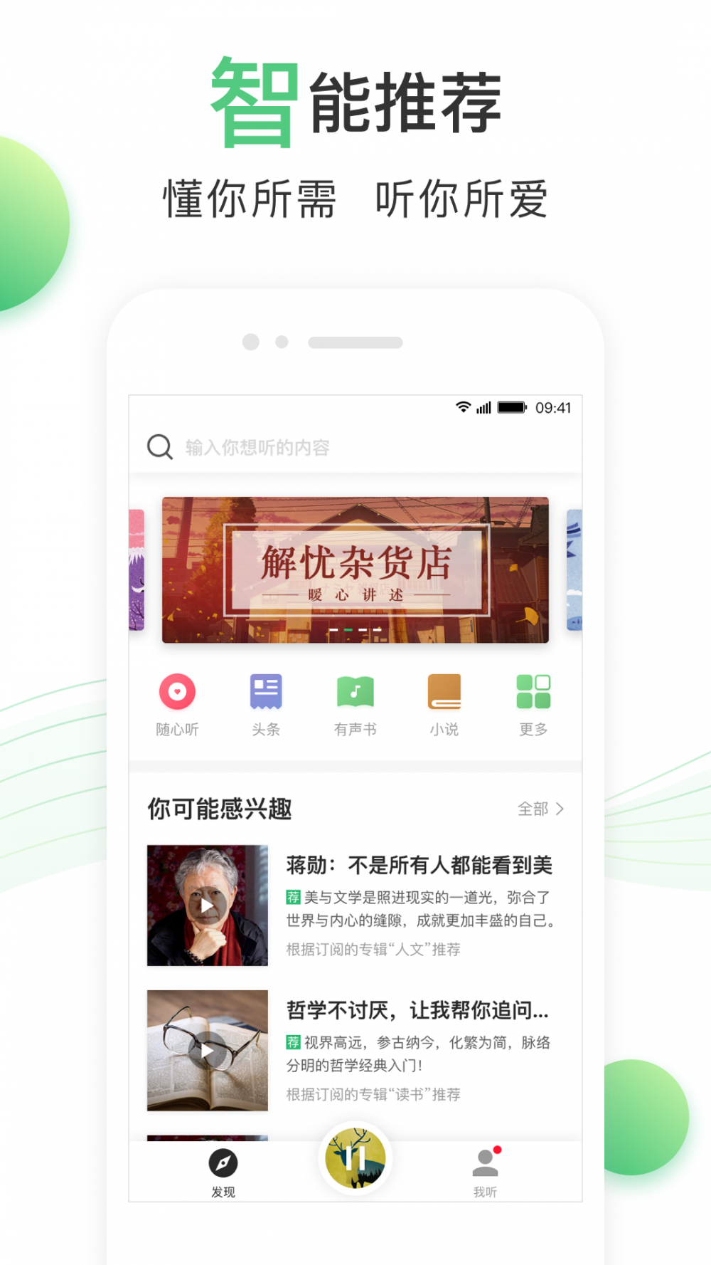 【应用简介】 在线听书,上百度爱听! 百度爱听,协同100好几家高品质出版社出版,为您出示精典有音综艺节目; 上百万数量级声频內容,处理懒人听书、找书艰难难题; 听别人故事、在线听书、上课、听小说的有声电台FM,让阅读文章变成听觉系统享有; 百度爱听,智能化手机听书app、听书神器! 【受欢迎好书】 《原则》讲解版,美国华尔街对冲交易瑞·达里欧一生聪慧凝固! 《大败局》,金融文学家吴晓波经典作品! 《如懿传》,匹敌《甄嬛传》的巨作,霍建华周迅领街,将要正在上映! 《时间简史》,读懂宇宙空间,读懂史蒂芬霍金, 《城南旧事》与凯叔讲故事协同先发荣誉出品, 更有《莽荒纪》《大主宰》等一批受欢迎网络小说等你来听。 更有: 热卖文学类:《未来简史》《人类简史》《解忧杂货店》《岛上书店》《牧羊少年奇幻之旅》