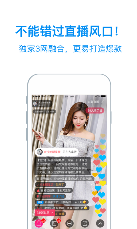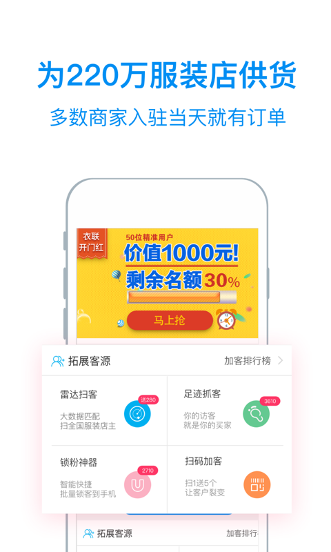 应用简介:【衣联供应商】是衣联网服装批发商城的商家版,是为衣联网220万时装店主开展线上批發买卖、求货资询、视頻验货的专享软件工具,是十万服装批发商汇聚的电子商务平台。服务平台汇聚全国各地女装、休闲男装、儿童童装及其內衣等时装店一手货源供应商。 【衣联荣获互联网100强公司】 【衣联荣获B2B最非常值得希望奖】 【南都&麻省理工授予的3C自主创新文化传媒巨奖】 特色功能 1.雷达探测扫客:智能化搭配并全自动连接衣联网220万时装店主,一键变为自身的顾客; 2.踪迹抓客:发掘衣联网220万时装店主每日的做生意趋势; 2.做生意社交圈:向衣联网220万时装店营销推广你的样式和优惠促销; 3.索粉武器:绑定微信,把手机APP、手机微信、网址开展同歩,随时把握做生意动态性; 4.视頻落款:手机上拍款录影,一键公布到店面,视頻选品顾客更亲睐; 5.每天求货:每日接到衣联网220万店家的及时求货要求信息内容,精确搭配; 6.线下推广加客:让顾客关心你的店面,加一个顾客再送一个类似顾客; 在线留言 官网:http://www.eelly.com 客服热线:400-6688-038(工作日内:早上9:00到中午17:30)