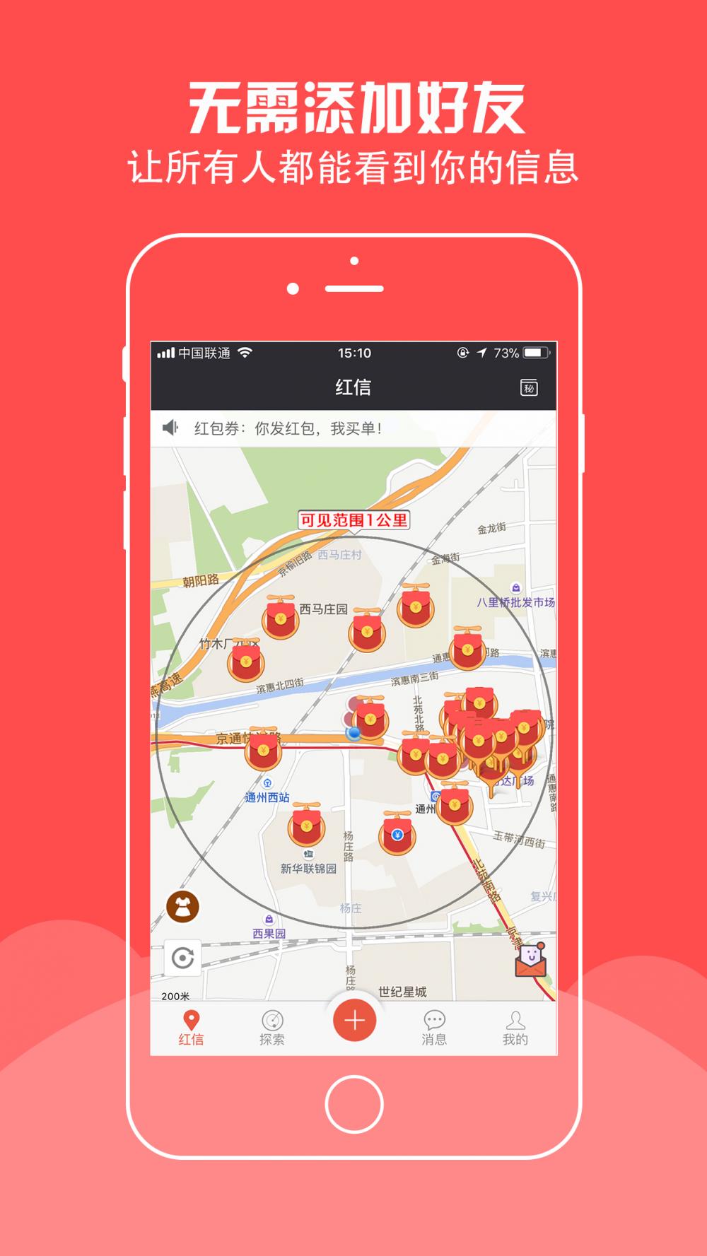 红信为大红包信息的通称,“红信”APP根据LBS技术性,在一公里以内开展人工智能技术强烈推荐,把趣味的內容优先选择强烈推荐给客户,主推当地社交媒体,另外具有生活类信息公布作用,把传统式的宣传单小广告服务由马路边、过街天桥、电杆搬到网上。 每一条信息全是以一个红包的方式呈现,让每一个信息上传者给自己的信息宣传策划付钱,让每一个信息接受者和传播者都能在每一条信息中获利。 随着着大家领红包和共享大红包的全过程,各种信息沿着微信朋友圈开展传播,层层递进,更改了传动系统单边,单面的传播方式,获得双层裂变式式传播。让再小的个人也可以传出有知名度的响声!