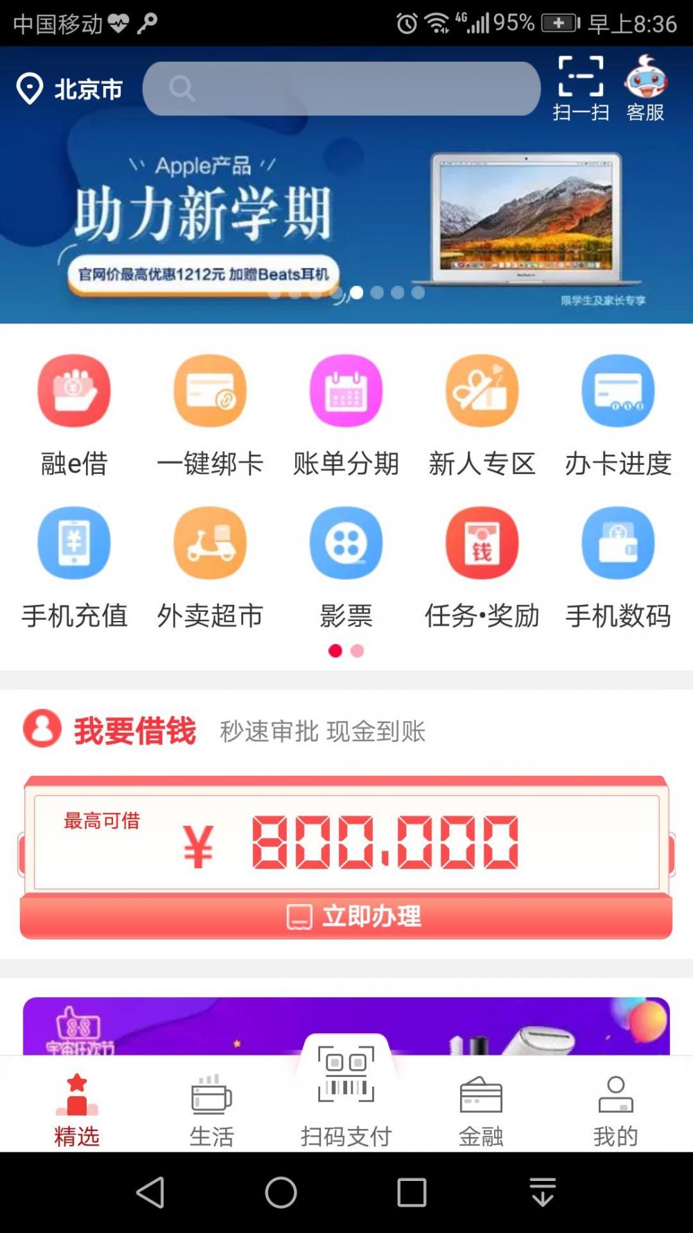 电视剧、休闲度假、外卖送餐、打的等生活好用情景。 【金融业】信用卡账单、还贷、借款(融e借)、手机支付、透支卡等金融服务,随时随心所欲。 【我的】我的每日任务、利益、積分、优惠劵、在线客服、营销推广、加盟代理等,清楚一目了然。 撸羊毛?看看吧!! 更多精彩