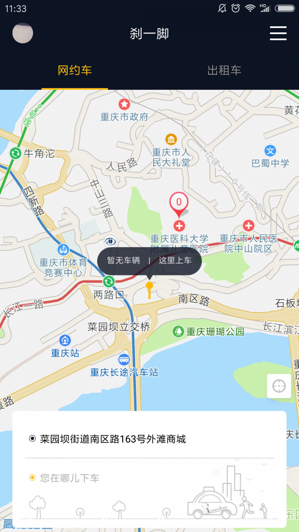 刹一脚是重庆市国泰汽车出租(集团公司)有限责任公司战投的出行服务服务平台,集重庆市国泰租赁二十五年城市出行运营、管理方法、服务工作经验和互联网技术、云计算技术于一体,为客户出示安全性、方便快捷、技术专业的出行服务,现阶段支持APP约车、手机微信约车、电話约车等。 【技术专业出行质量服务】 二十五载城市出行服务工作经验,企业化经营,规范化管理方法,潜心造就技术专业 【靠谱合理合法安全性高于一切】 车子自买,合格达标,商业保险齐备;服务平台合理合法,资质证书完善;严苛审批规章制度,工作人员执证上岗,经常性学习培训,诚实守信考评 【一键即约高