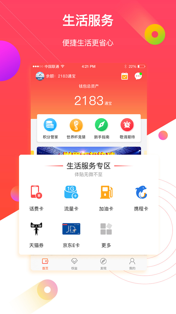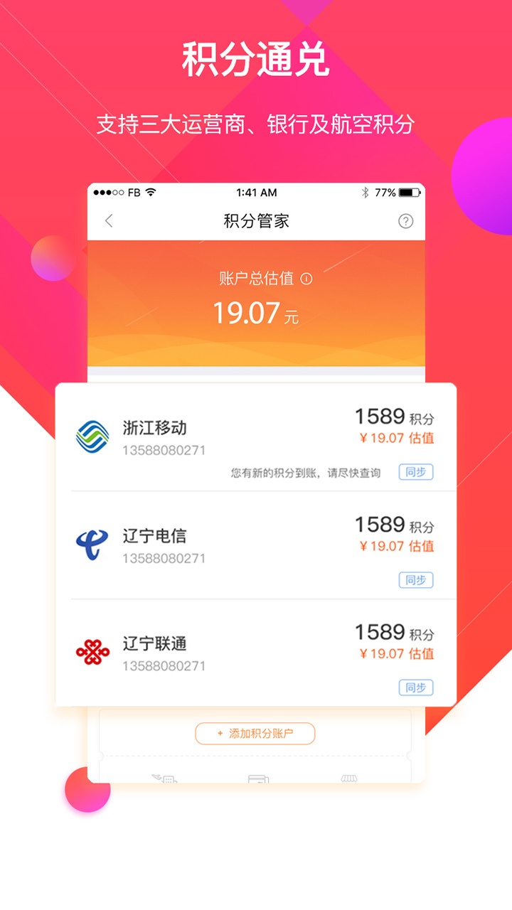 聚积宝能将您生活中的各种积分整合后变成现金,用于在线上进行各种如话费流量,
