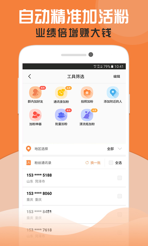 硅微粉小助手(微商加粉神器),自动加粉涨粉,加活粉迅速拓人脉增客户资源,群发小助手帮你快速营销推广让您销售业绩增涨。大家的微商工具箱内有十多种常用工具可供微商代理大咖应用,让微商代理新手美丽蜕变为微商大师。硅微粉小助手您的智能化微商管家。硅微粉小助手(微商加粉神器),不但能够大批量加粉、群内加好友、手机通讯录加粉、照相加粉、自动加上附近人、微信漂流瓶加粉;还能够清理微信僵尸粉、一键群发、一键关注评价、自动朋友圈转发、微信清理及天天向商、微商水印照相机、微商相册、微商水印、微商截图王等作用,微商微信加粉、微商软件、微商加人、微商加粉等微商工具就选微商客源神器、微商加粉神器、人脉关系加粉王——“硅微粉小助手”。 【★加粉涨粉作用】 1、大批量加粉:可按大城市、地区挑选粉絲手机通讯录,自动加上手机通讯录上的手机号码为手机微信好友,全部手机通讯录上的粉絲均为活粉,能迅速加粉涨粉。 2、群内加好友:自动加上群内的人为因素好友,适用挑选男孩和女孩加上。 3、手机通讯录加粉:自动导进手机里的手机通讯录名册,加为手机微信好友。 4、照相加粉:冲着手机通讯录拍个照自动鉴别微信号码,轻轻松松加上为好友。 5、自动加上周边人为因素好友,适用挑选男孩和女孩加上。 6、微信漂流瓶加好友 【★自动群发营销推广作用】 1、自动群发信息:自动群发全部好友或按标识开展群发,可设定对选定的好友开展推送或开展不推送。 3、自动群发微信聊天群:可选全部群或一部分群开展群发,也可对不用群发的群开展屏蔽掉,适用中断点群发。 4、适用自动群发微信公众号;自动群发微信小程序;自动群发照片;亲密无间群发。 【★自动清粉作用】 检测僵尸粉:一键检验好友死粉,不发信息,免打扰模式、零误删除、不封禁、暖心检验出好友死粉,一键备注名称一键删掉。 【★自动分享评价作用】 1、一键转发:好友朋友圈小视频、照片、文本可一键转发到本人微信朋友圈 2、一键评价关注:独立设定评价与关注总数,大批量评价关注微信朋友圈,提升 与好友的互动交流量。 【★红包提醒作用】 独创性迅速识别系统,急速红包提醒,群内的大红包通杀,已不错过了一个亿。 【★微信清理作用】 一键清理微信各种各样系统垃圾、缓存