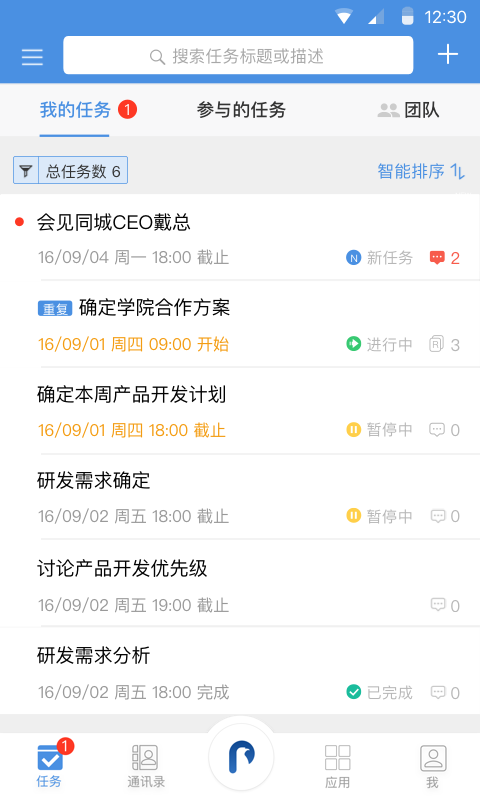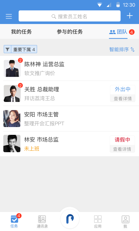 内容摘要: 大管加(ERPlus)是为中小型企业量身定做的多方位可视化工具。根据“史无前例”的方法协助企业管理人员提升 员工执行力,减少经营成本,也让优秀的员工已不被淹没。 关键作用: 任务管理 广告任务详细便捷,待做任务智能化排序,问题反馈简易立即; 市场销售智能管理系统 客户资料一键导进,沟通交流結果即时纪录,销售额平稳提高; 员工绩效考评 任务完成状况与绩效考核全自动关系,让员工的每一份勤奋都是有获得; 办公系统 手机就可以进行各类审核及平时考勤管理,放心又省劲。 根据在