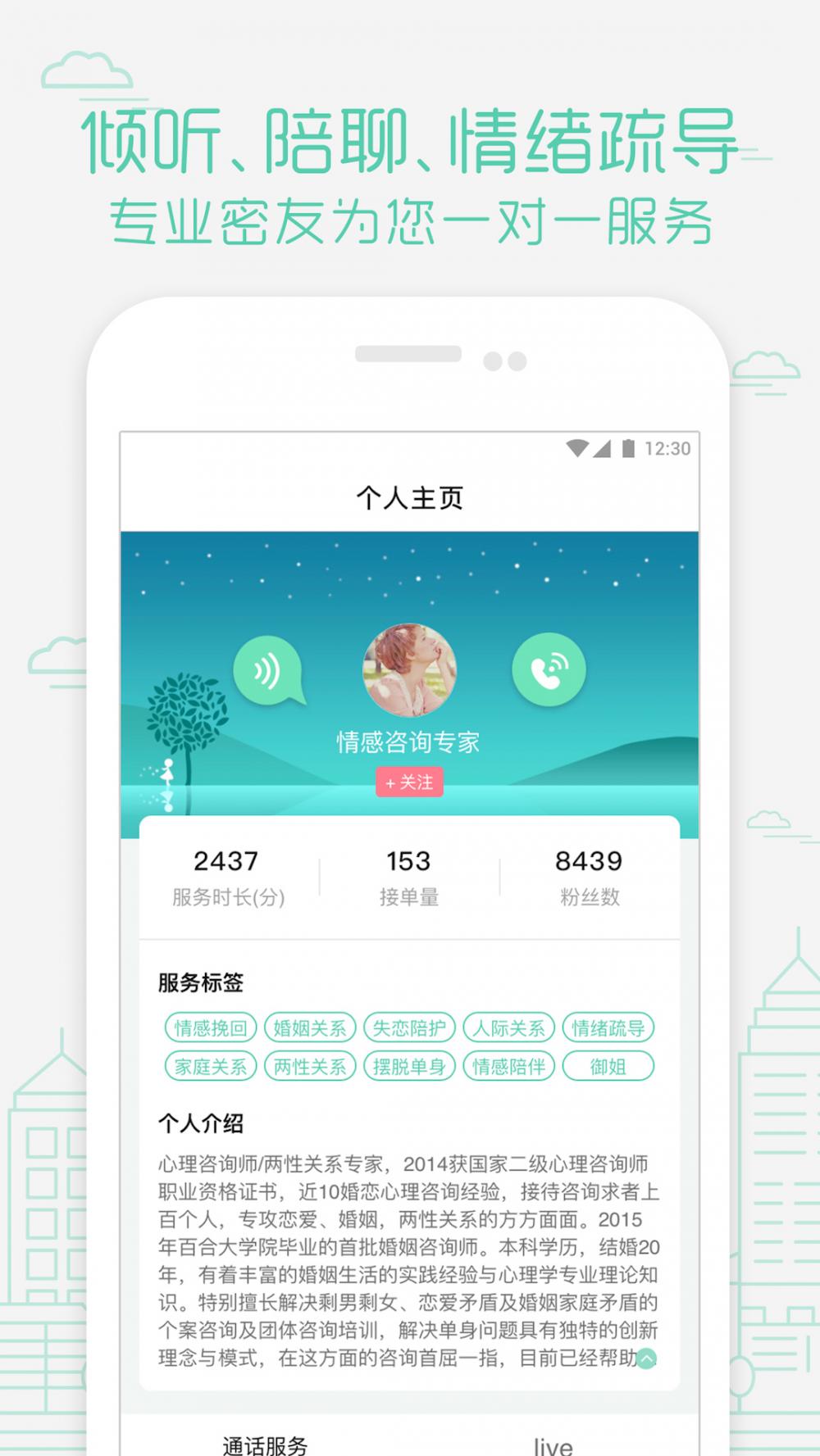 「争吵了,分手,如何挽回宝贵的情感?」 「婆媳之间产生矛盾,老公不了解?」 「单恋Ta,心理状态的密秘不知道该找谁倾诉?」 「男友有外遇印痕,应该怎么办?」 「日常生活压力大,不知道该去哪里排解?」 ... 有烦心事不知道该找谁倾诉?赶紧来获得密聊吧,这是一个能随时随地请人聊心事的感情倾诉服务平台。服务平台有大量的心里咨询师、感情咨询顾问、恋爱达人、亲子关系咨询顾问、情感陪护师,专业人员一对一帮您排解苦恼。密名回拔语音通话技术性,彼此号互相由此可见,维护您的隐私保护不被泄漏。隐私保护有确保,心事安心聊。 在获得密聊,你的全部心态,从此不用独自一人应对。