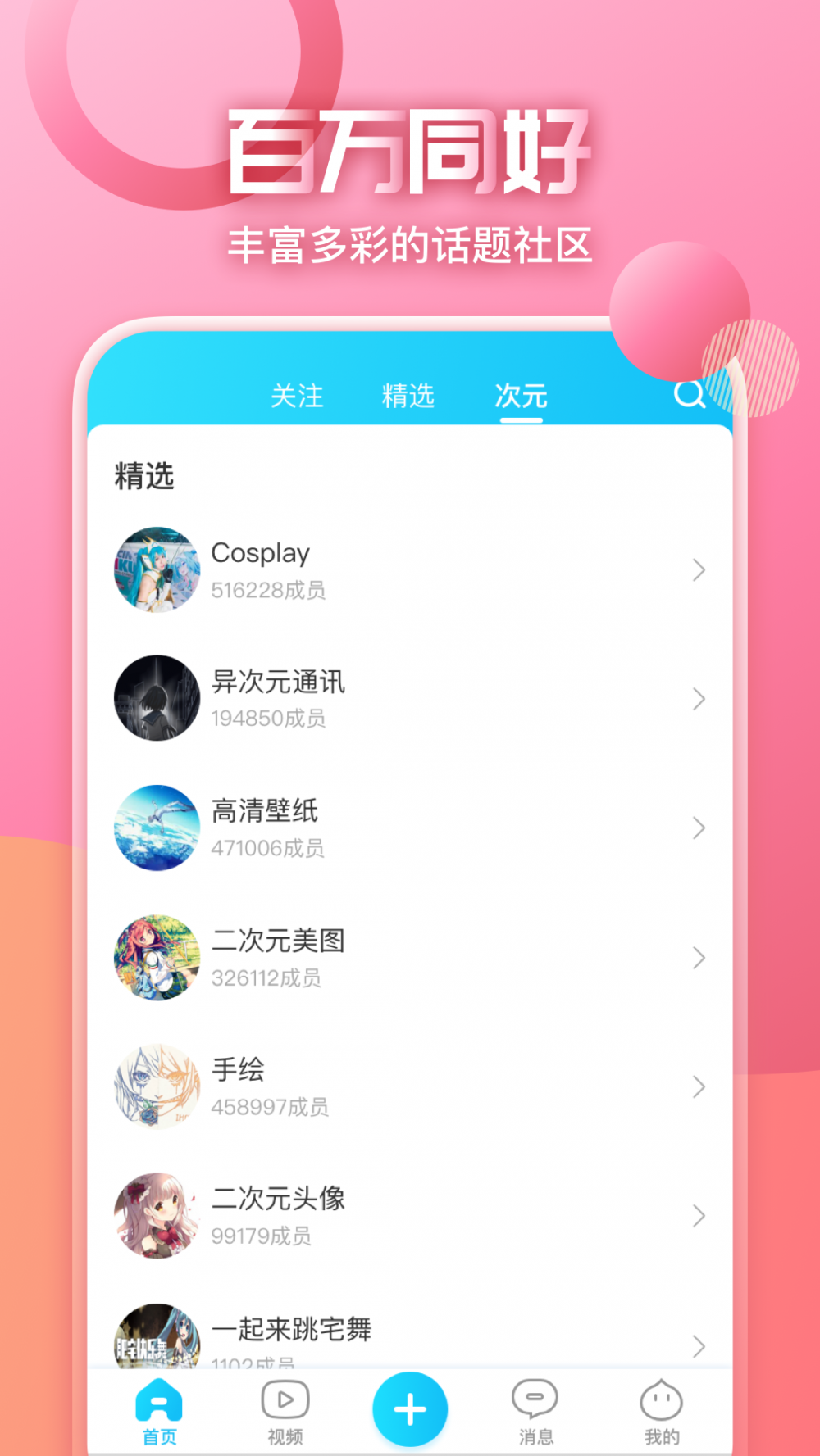 动漫漫画、动漫新番党,也有萌妹子、宅男宅女、腐女、某控等许多不一样属性的小伙伴,常常找到你要想的好基、姬、机友哦( ̄y▽ ̄)~ 除开在一起追番、cosplay、斗图图片、打游戏、晒自拍照、共享美图照片之外,次元社还会继续机构各种各样线上与线下