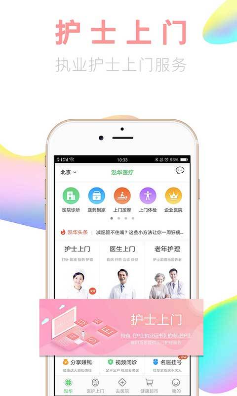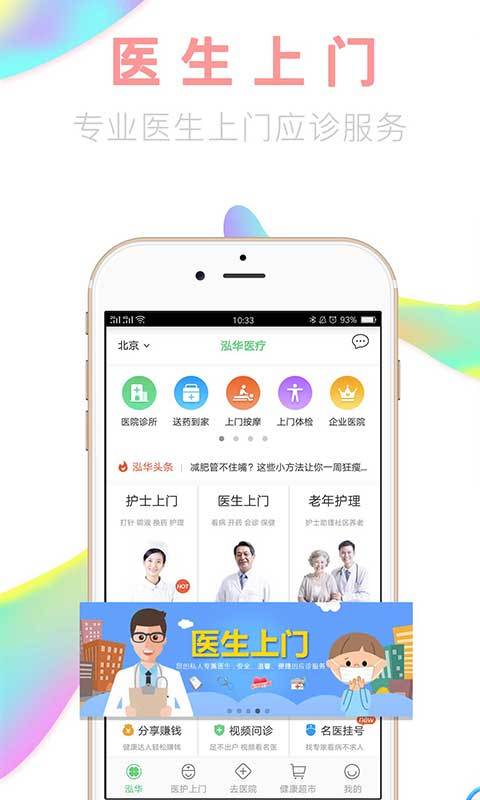 泓华医疗,是具备定点医疗机构从业许可证书的靠谱线上医疗服务组织,具备国家标准的技术专业医护进家服务知名品牌。可随时随地根据网上预定名中医权威专家、护士执业考试,出示上门护理服务。 =====关键作用===== 【泓华医疗】 泓华医疗组织遵照国际性JCI医疗安全品质服务规范,搭建以顾客为管理中心的医疗安全品质服务管理体系,严苛把控每一个服务品质关键点,全国各地统一服务规范。 【注册送五百元奢华豪礼!】 √56项服务,全方位满足需求:医师上门:全科医师上门、理疗师上门、专家上门、医生上门、按摩技师上门、普外手术拆线、平静照料、家中家庭医生等; 护理人员上门:注射、打点滴、伤口换药(含PICC)、胃肠减压、导尿、鼻饲管、清洁灌肠、雾化吸入治疗、会阴擦洗、癌病护理、帕金森病护理、糖尿病患者护理、糖尿病患者护理、生完孩子母婴用品护理、催奶师护理等; √五万名中医权威专家和护士执业考试:严苛的医护准入条件体制,大家的医护来源于靠谱三甲医院,国家卫生部验证,随时随地为您出示上门护理服务; √全国各地范畴服务:服务遮盖北京市、上海市、广州市、深圳市、南京市、杭州市等全国各地31个省,300好几个大城市,为全国各地客户出示上门进家服务。 √您的个人专属医生护理人员:服务時间、地址、服务新项目,您都能够随意挑选,大家考虑您的所有要求! =====别的特色功能===== 【预约就诊】 预定2万名全国各地名中医权威专家预约挂号就医服务,超出一万家医院门诊门诊所进驻泓华服务平台,为您出示多方位、温暖、合理、方便快捷的医院门诊服务 【咨询热线】一百万名验证医护为您出示电話视频语音服务,十分钟内解释,自主挑选医护为您服务,可推送文图、视频语音方式,提交最近体检报告单、医生叮嘱等輔助材料。 【送药上门进家】药物100%确保,7x24钟头迅速送药上门上门服务。 【健康检查】本人的常规体检、团队常规体检、极低优惠价,独立挑选全身体检,为您创建专享健康管理档案。 【基因检查】根据基因检查技术性可预料人体患病症的风险性,剖析它所带有的各种各样遗传基因状况,认识自己的遗传基因信息内容,进而根据改进自身的生活环境和生活方式,防止或减缓病症的产生。