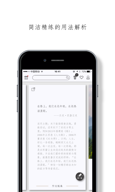 语文课考試时,你是不是曾为怎样憋出800字的优秀作文咬牙切齿?当见到学霸同桌下笔如有神时,你是不是暗暗懊悔沒有多背好多个的优秀作文素材?见到盆友分享的名言名句,你是不是暗自艳羡另一方的文笔与情结?实际上你与学神的间距也只差一个作文纸条! 纸条君想要与你一起,用更短的時间,以一种简易漂亮的方法,更高
