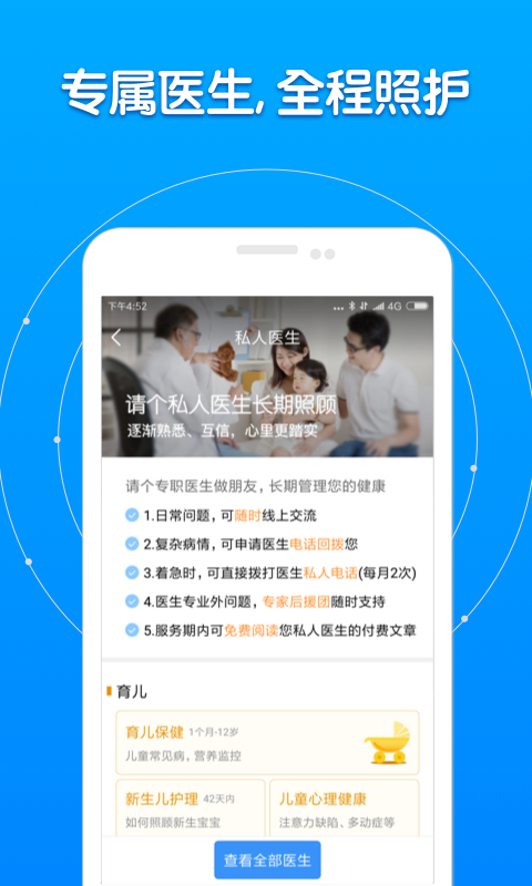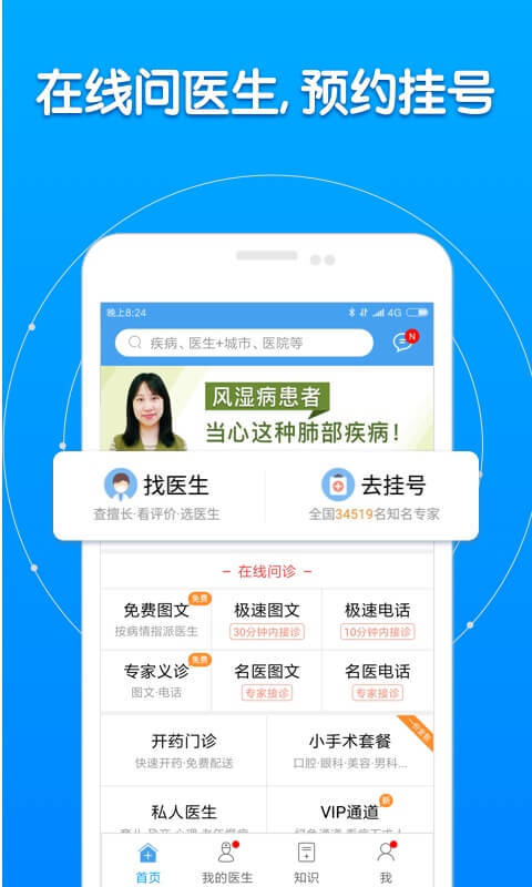 看病就用好大夫,技术专业、放心、安心! 好大夫在线,可信赖的医疗平台,汇聚全国各地18万 高品质诊疗专家教授,为病人出示在网上看病、挂专家门诊、线上开药、线上买药、网上复查、互联网预定手术治疗、私人医生等多方位服务,完成小问题重大疾病网上就诊,十二年服务超4000万病人! 【在线问诊】查善于看点评选医师,全国各地三甲医院权威专家自己回应,文图、电話、视頻方式随意选择。 【预约挂号】多种多样预约挂号方法,预定名中医,已不求人 【开药医院门诊】迅速开药,完全免费派送 【私人医生】专属医生出示全程病症管理方法,长期性照料 【VIP安全通道】悦享5大权利,全程绿色通道政策,诊疗大管家式服务