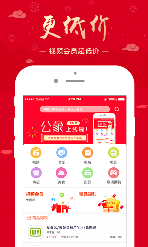 公象,更廉价的视频会员二手商城。在这儿,你喜爱的视频会员,公象让你更低的价钱;你要售卖的视频会员,注册网店,一键发布产品立刻交易。健全的买卖管理体系,交易安全性有确保。 ******特色功能,邀您感受****** 【免费vip】视频会员VIP免费领,不玩定义,不用招数,真实的免费领取视頻VIP,已服务项目数十万客户。 【优选特惠】受欢迎优惠劵免费领,你去或是不到,券就在那里,不领白不领。都三十好几了节省是点不是吗? 【資源公布】闲置不用的视频会员、消耗了也就消耗了为何不公布到公象,让有必须的盆友拿来应用?自身还能够换些零花钱,不妨一试? 【及时沟通交流】买家商家有效沟通,商家在线客服买家,立即回应买家疑惑,让购买过程更高