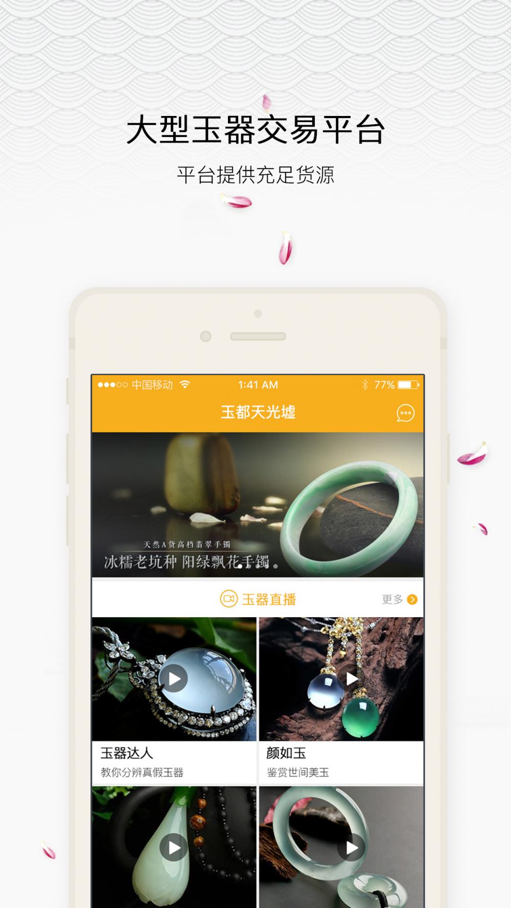 一款能生钱的玉器直播间 买东西APP 玉都天光墟是中山市玉都天光墟互联网技术有限责任公司集团旗下的一款明星产品,我们立足于有着“玉都”之称的四会天光墟玉器市场批发,立诚为翡翠玉发烧友出示一种以本人为管理中心的全新升级直播购物服务平台。 除开出示更方便快捷形象化的直播购物、公布购买等基本作用外,还能轻松坐收提成,让买东西变为二倍开心。 【关键作用】 1、直播购物,玉器交易更形象化; 2、公布购买,让任何人为您度身强烈推荐商品; 3、强烈推荐购买,每一个客户也可以强烈推荐商品,变成店家; 4、玉器商城,立足于翡翠批发销售市场,高品质根源价钱,翡翠玉任你选择; 5、玉器百度百科,从玉器新手升級为玉器权威专家的公共图书馆; 6、等着收佣,不用附加实际操作,钱夹全自动凸起来,轻轻松松取现。 【安全防范措施】 1、全部买卖由玉都天光墟全过程贷款担保,为您的资产服务保障; 2、商城全部商品均为A货,买东西安心; 3、高品质售后服务,没有理由三天退换货,迅速处理您的售后服务纠纷案件; 【在线留言】 1、官微:玉都天光墟 2、官网:yudutgx.com 3、联系方式:400-000-3724