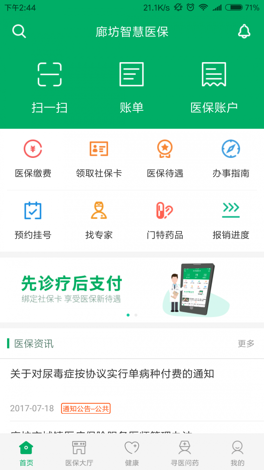 免费下载 大小: 下载:次 廊坊智慧医保 安卓版 医保 手机客户端 跟踪 指南 支 持: 分 类:软件下载 大 小: 开发者: 提 现:10 说 明: 下载量:次 发 布:2023-07-27 08:10:09 手机扫码免费下载 纠错留言 #廊坊智慧医保 安卓版截图 #廊坊智慧医保 安卓版简介 “廊坊市智慧医保”是为各省市、区、地市人力资源与劳动保障局出示个人社保业务查询,医疗保险业务查询,医师挂号预约,个人社保服务指南、法律法规。除此之外,客户能够根据app客户端用社会保障卡付款挂号费、预约转诊付款诊查费和医疗费等花费,另外,可实时跟踪本身的健康服务情况,并依据健康情况,为客户出示定制的诊疗、身心健康计划方案。 热搜词一起跟踪网求生指南2大鱼号手机客户端生存指南2