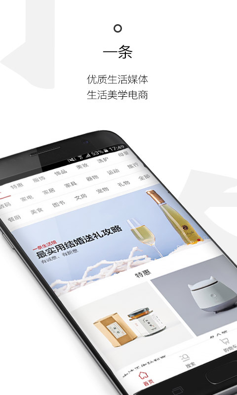 【汇聚全球审美良品】 一条是一家汇聚全球良品的电子商务,这儿不生产制造产品,只售卖生活审美。 【与众不同的在线购物服务项目】 这儿的产品,用心选择于一条视频访谈的全球1000多名室内设计师、艺术大师、文学家、工匠、美食专家和生活家。 这里有我国胆机鼻祖手工制做的猫王复古时尚音箱;有职人匠心独运为闺女手工制作设计方案打磨抛光的木马病毒靠椅;也有妈妈专为小孩栽种的有机化学蔬菜水果;故宫博物馆荣誉出品的传承中国雅致的礼物饰品…… 更是根据这类資源,一条为上千万客户出示在线购物服务项目,汇聚超出1000家单独知名品牌、上万种全球良品,包含数码家电、服装美妆护肤、书籍文化创意、美食记、生活家居家具... 【向美而生的生活核心理念】 幸福的物品不可以仅仅漂亮而没用,一条app做为生活审美好货的集成化者,将好用、精美、感情授予生活的每一个角落里,提高生活质量与满足感才可以向美而生。 【聆听你的反馈意见】 喜爱一条,请使用5星五星好评激励,假如给你一切建议或是提议,热烈欢迎根据下列方法在线留言 官微:我的一条 官博:一条生活馆 官网:http://h5.yit.com/