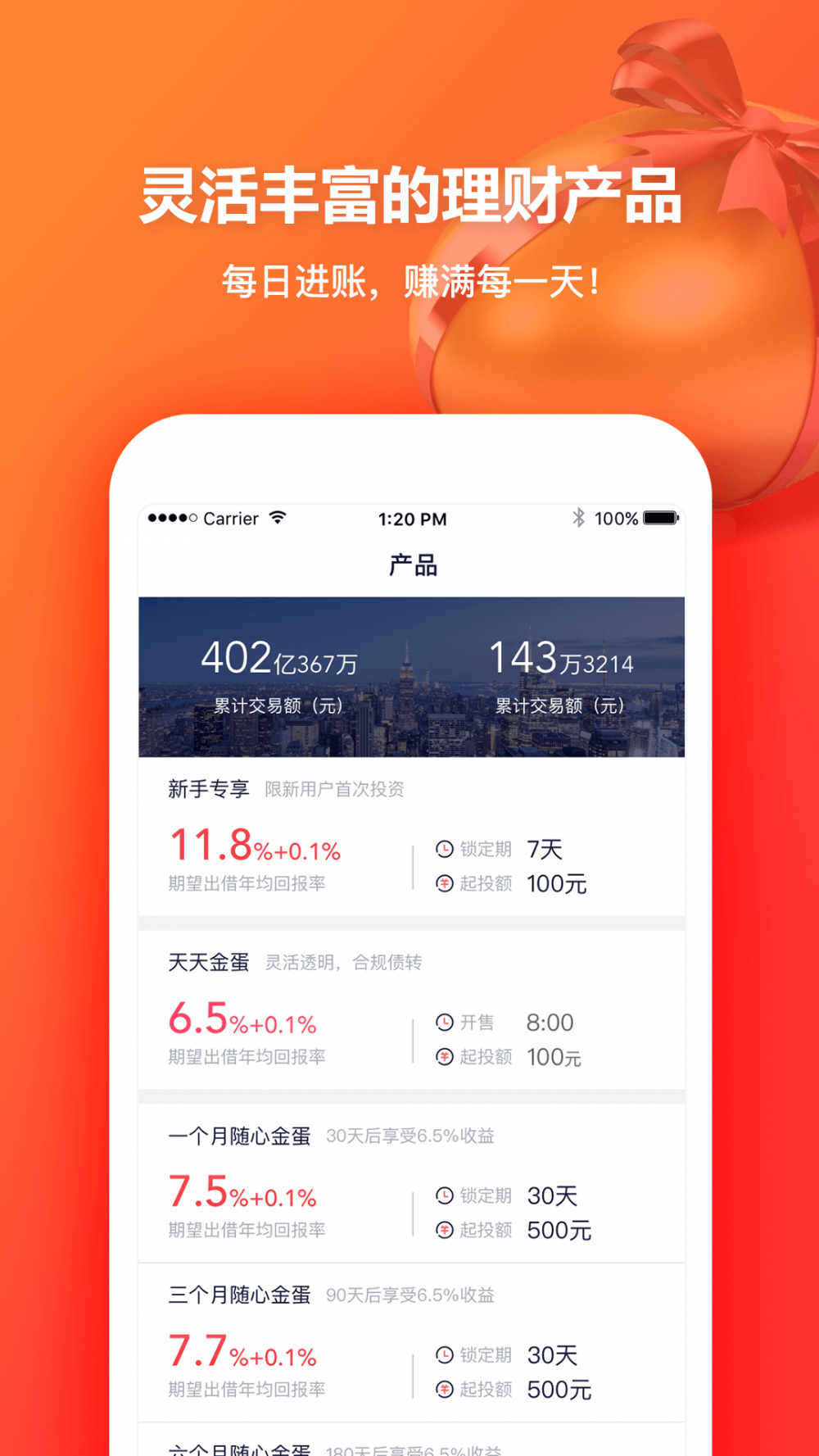 金融机构银行存管,一百元起投,申请注册即送一千元大红包! 【运用叙述】 金蛋理财——赚满每一天! 金蛋理财是新三板控股子公司,认缴出资额注册资本五千万,顺利完成金融机构存管!金蛋理财在银行存管金融机构为每一个客户开设单独帐户,每一个客户资产存进本人单独帐户,金融机构依据投资者、贷款人的命令和合同书承诺,对资产应用、划付开展管理方法和监管! 总计申请注册客户超出140万,总计买卖促使额度超出396亿。 【新手褔利】 1.申请注册即送一千元立减大红包: 一个月随心所欲金蛋:满2万返十元;满5万返30元,满10万返120元 3个月随心所欲金蛋:满2万返二十元;满5万返60元,满10万返260元 6个月随心所欲金蛋:满2万返30元;满5万返90元,满10万返380元 2.新用户还享11.8%的年收益率的特享商品 【产品介绍】 1.金蛋理财的基本商品“每天金蛋”,一百元起投、按日计算利息、随存随取。 2.“随心所欲金蛋”和“悦享金蛋”是安全性高品质的按时投资理财产品,合理的考虑不一样要求的客户。 【殊荣】 1.北京中关村高新科技公司 2.在线理财稳进发展趋势公司 3.17年度投资价值奖 4.北京市网络金融产业协会观测员 【金蛋理财联系电话】 人工客服电话:4006650371(10:00-19:00) 官博:金蛋理财 微信公众平台:jindanlicai