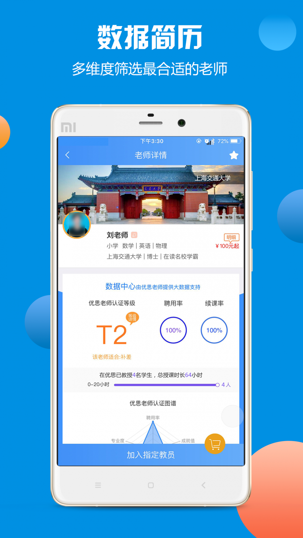 -优思家教出示百所名校联名鞋验证的985/211优秀教师上门服务1对1家教服务项目; -现阶段已上海交大等30多家高等院校达到签订协作,为超出十万 孩子出示一对一服务上门; -大家一直坚持来源于名校,楷模承传的核心理念,并根据互联网大数据为孩子的“学”和老师的“教”颠覆式创新 为何要挑选优思家教 -老师好--老师所有来源于上海交大、清华等985/211名校 -独立递送--信息数据信息彻底全透明,独立选择令人满意的老师 -有保障--高等院校品牌塑造,服务平台交易担保,服务项目有保障 除此之外 -你可以积极指定你的心爱老师 -每一次课老师及时反馈,你可以立即追踪孩子教学情况 -对于行课程内容整体规划,依照课程表整体规划授课,实际效果有保障 -查询老师的实时动态,与老师一起为孩子的发展服务保障 -升学考试资询立即查询,为孩子充分准备 在线留言 微信公众平台:优思家教