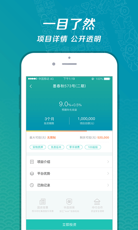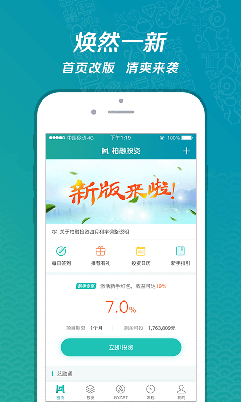 柏融投资——技术专业艺术品金融服务项目 灵便:一百元起投1-十二月投资限期 盈利:7%-11%年收益率办理手续学费全免 国资情况华昌贷款担保中行管控 新人申请注册有好礼:188元大红包 国资系投资理财产品