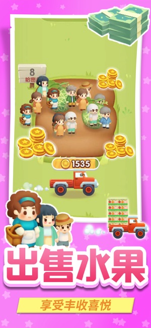 水果模拟经营的游戏,你需要不断的进购更多品种的水果,这里在画面中点击就能完成操作,去收集各种水果进行分享,最终完成任务赚取红包的游戏。